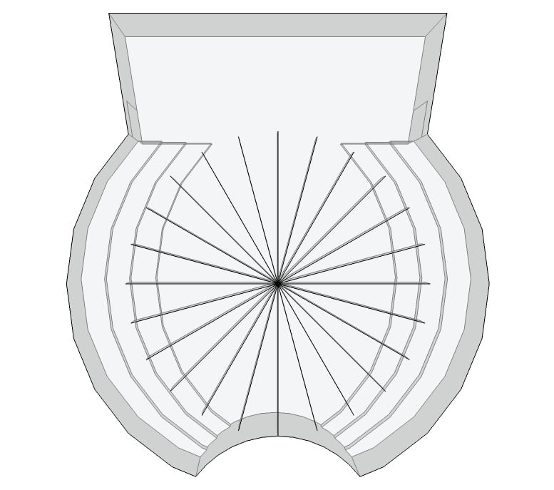- audytorium, kształt owalny, kubatura ok. 300 m3, powierzchnia ok. 350 m2,